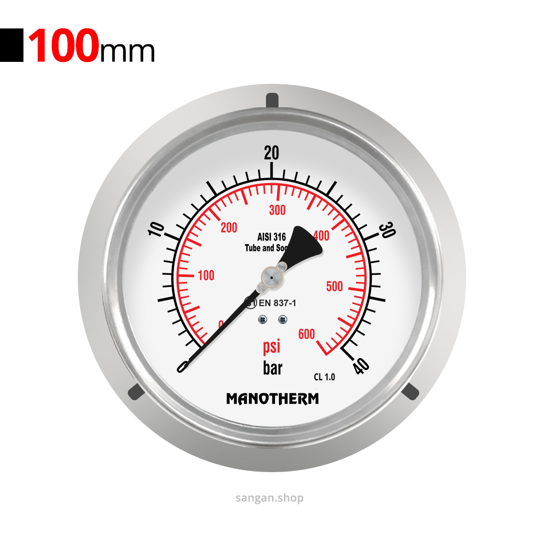 برچسب: bourdon tube pressure gauge, pressure gauge, گیج فشار 40bar, گیج فشار افقی, گیج فشار فلنج دار, گیج فشار مانوترم