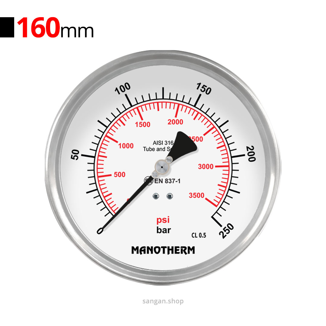 گیج فشار افقی 250bar مانوترم دقت 0.5 درصد