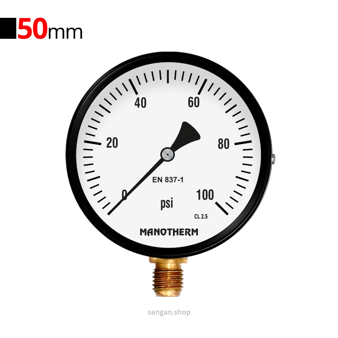 گیج فشار برنجی عمودی 100psi,50mm مانوترم