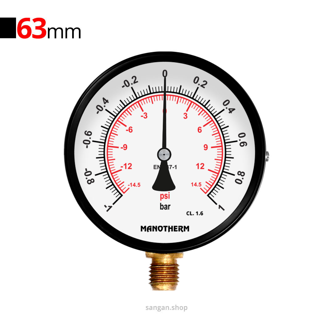 گیج فشار برنجی عمودی 1+1- بار مانوترم