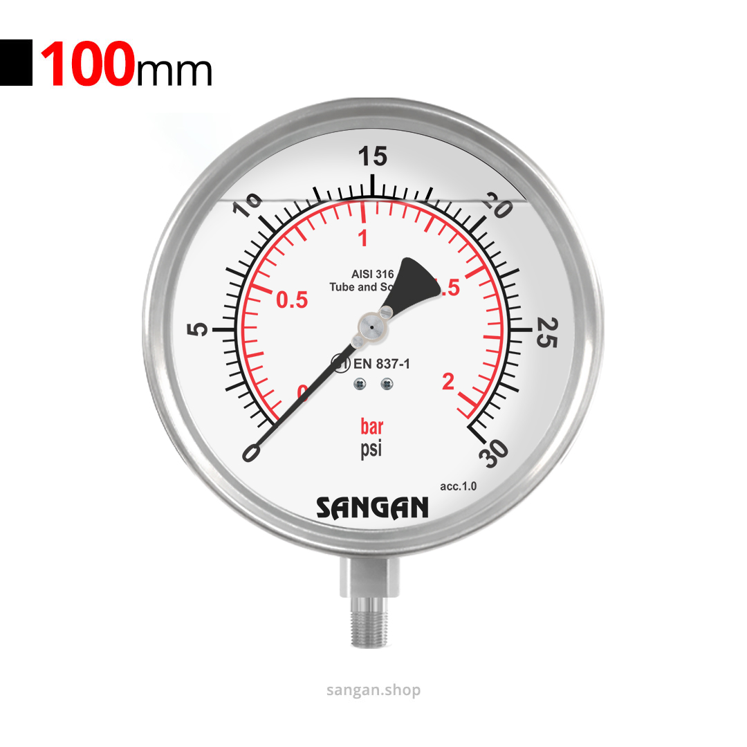 گیج فشار عمودی روغنی 30psi سنگان مدل PG18/A