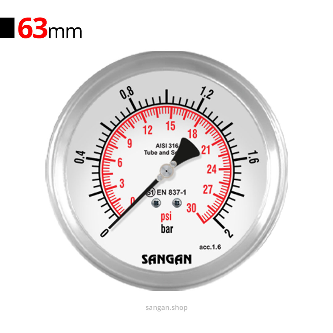 گیج فشار افقی 2bar سنگان مدل PG18/B براکت دار