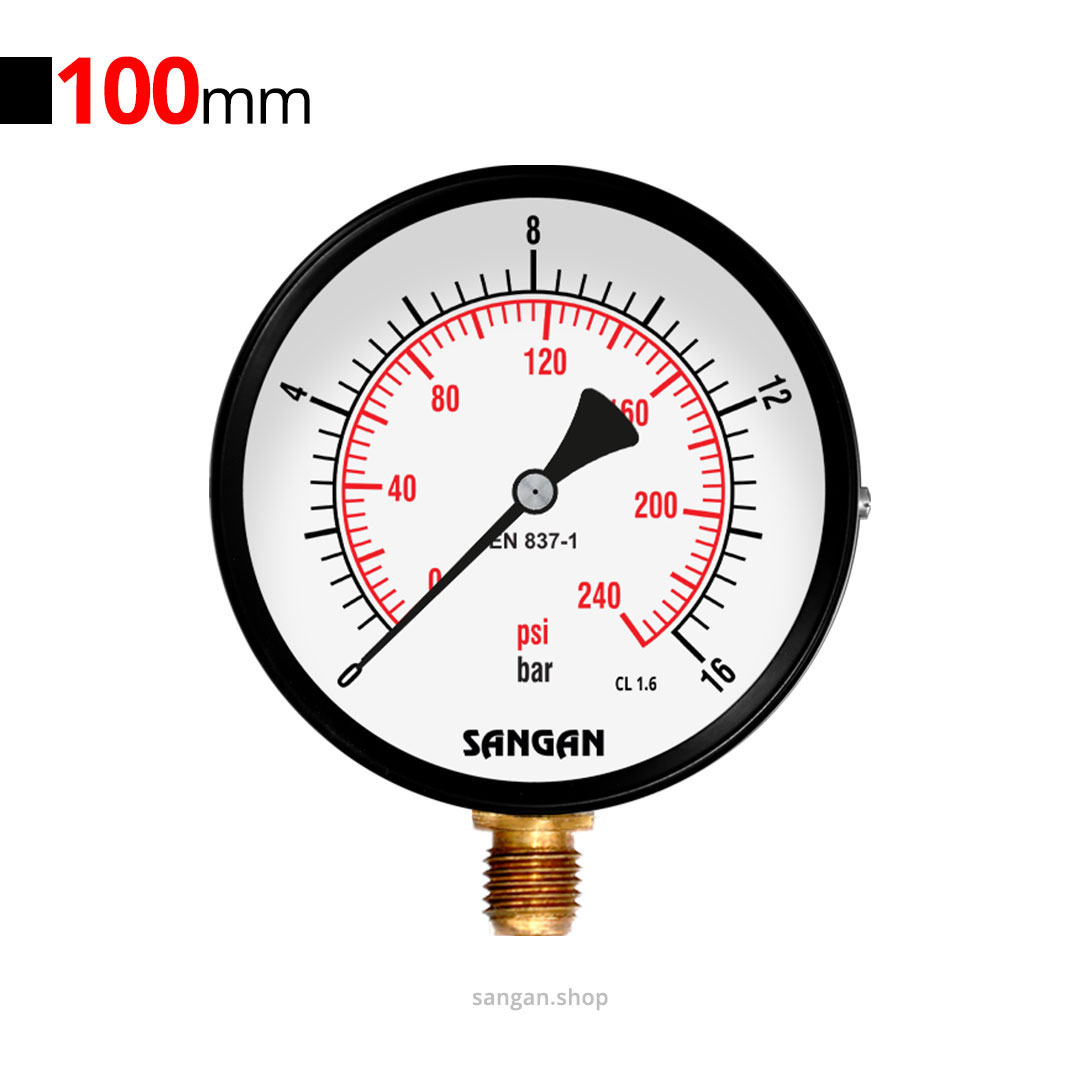 گیج فشار برنجی عمودی 100mm,16bar مدل PG1/A سنگان